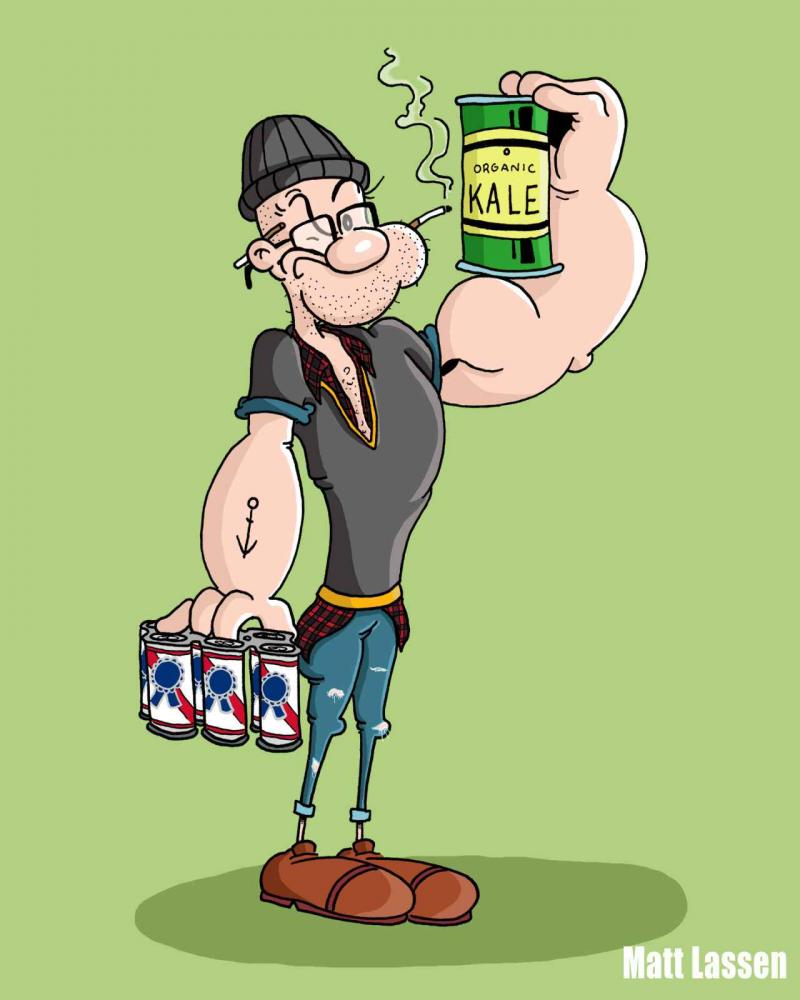 De cartoonist bij MAD Magazine heeft wel 23 verschillende tekenfilm- en spelletjesfiguren omgebouwd tot ware hipsters. Crop tops en kniekousen inclusief. Leuk om naar te kijken, maar de kunstenaar geeft hiermee ook een staaltje maatschappijkritiek mee. Ik wou een eerbetoon brengen aan de cartoons van mijn jeugd met een kritische kijk op onze maatschappij. Ik vond het een goed idee om iets waarvan ik hou te combineren met iets waarvan ik niet hou: hipsters. Hipsters proberen erg hard eruit te springen en te overdrijven, wat overeenkomt met de principes van een goede cartoon. Daarom dacht ik dat dit een goed idee was, vertelt Matt aan Buzzfeed.