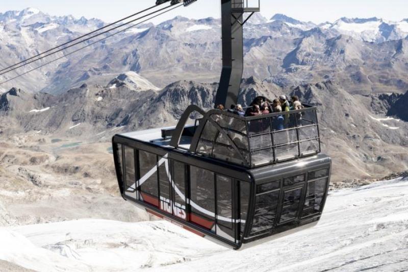 Wie droomt er niet van om te genieten van adembenemende panorama's in de cabine van een kabelbaan? In Tignes kan het: elke zomer is de kabelbaan naar de gletsjer voorzien van een terras. Op een paar minuten sta je 3.456 meter hoog. Tijdens de klim geniet je van een prachtig 360° uitzicht op de toppen van het Parc de la Vanoise.