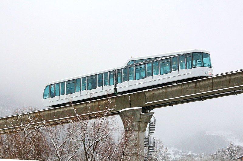 Vanaf het station Bourg-Saint-Maurice wandel je direct naar de volledig gerenoveerde en nu 100% elektrische kabelbaan. Die brengt je in slechts zeven minuten 800 meter hoger naar Les Arcs 1600. Dankzij het panoramisch dak en de glazen deuren krijg je tijdens de klim een ongelooflijk uitzicht op de Tarentaise-vallei.
