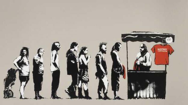Het duurste stuk was Rude Copper dat een agent voorstelt met opgestoken middelvinger. Dat werd voor 36.875 euro verkocht. Christ with Shopping Bags was het tweede meest populaire stuk met een prijskaartje van 25.500 euro.