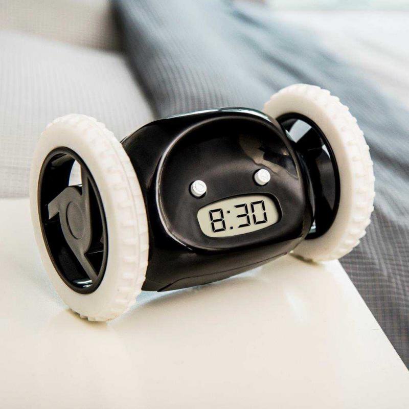 Ben je absoluut geen ochtendmens en is eindeloos snoozen jouw probleem? Deze wekker springt moeiteloos van je nachtkastje en rijdt net zolang rond in je slaapkamer, tot je hem gevangen én uitgezet hebt.