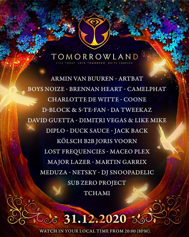 Je droomt er ongetwijfeld van op oudejaarsavond vrienden of familie te knuffelen en te feesten tot in de vroege uurtjes. Maar elke dag worden we met de neus op de feiten gedrukt: «Dat zal dit jaar niet gaan.» Dan maar online feesten op Tomorrowland? Om het nieuwe jaar al dansend in te zetten, organiseert het festival een virtueel Tomorrowland 31.12.2020'. 24 artiesten sieren de line-up, onder wie Armin van Buuren, David Guetta, Dimitri Vegas & Like Mike, Major Lazer, Martin Garrix en Snoop Dogg aka DJ Snoopadelic. De party wordt wereldwijd uitgezonden, aangepast aan ieders tijdzone. Het evenement is de opvolger van Tomorrowland Around the World', een virtueel alternatief voor de geannuleerde editie deze zomer. Standaardtickets kosten 20 euro, maar er zijn ook speciale packages met geschenkdozen, confettikanonnen, vlaggen en cava.