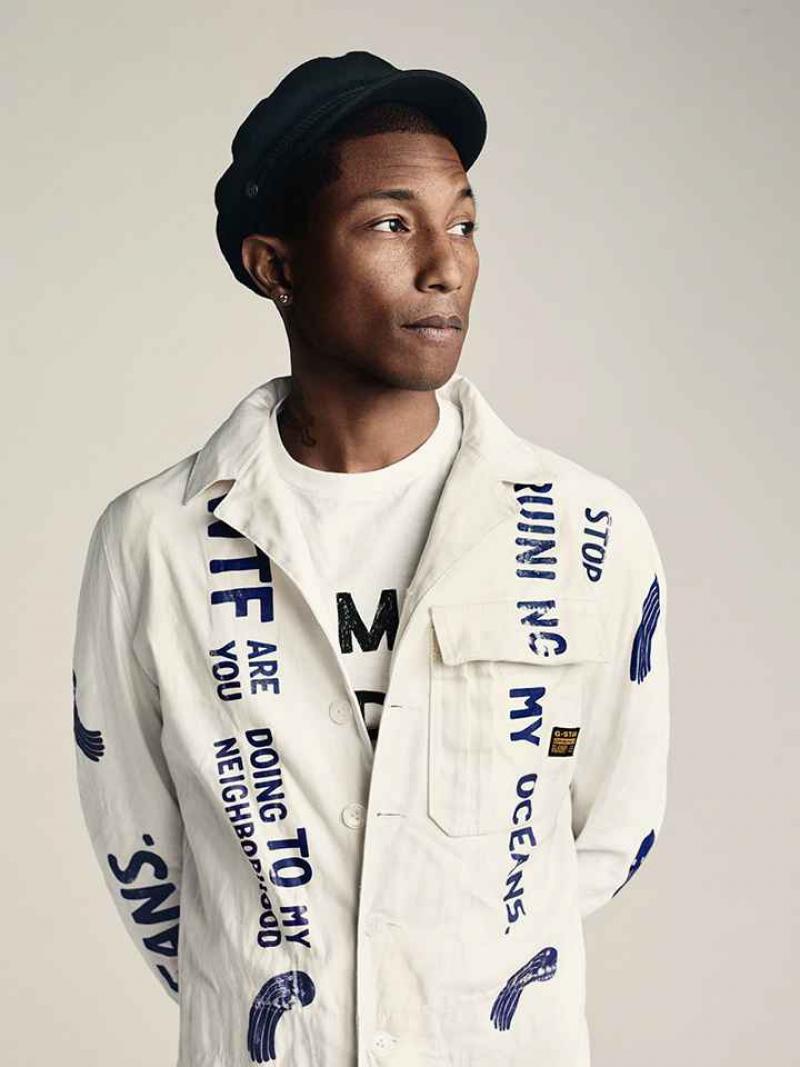 De Amerikaanse producer Pharrell Williams schudt niet alleen toffe plaatjes uit z'n mouw, maar weet ook aardig zijn weg te vinden in de modewereld. In samenwerking met G-Star lanceerde de zanger de collectie RAW for the oceans'. De kleurrijke T-shirts, sweaters en jeansbroeken van de kledinglijn worden van A tot Z vervaardigd uit plastic afkomstig uit de oceaan.