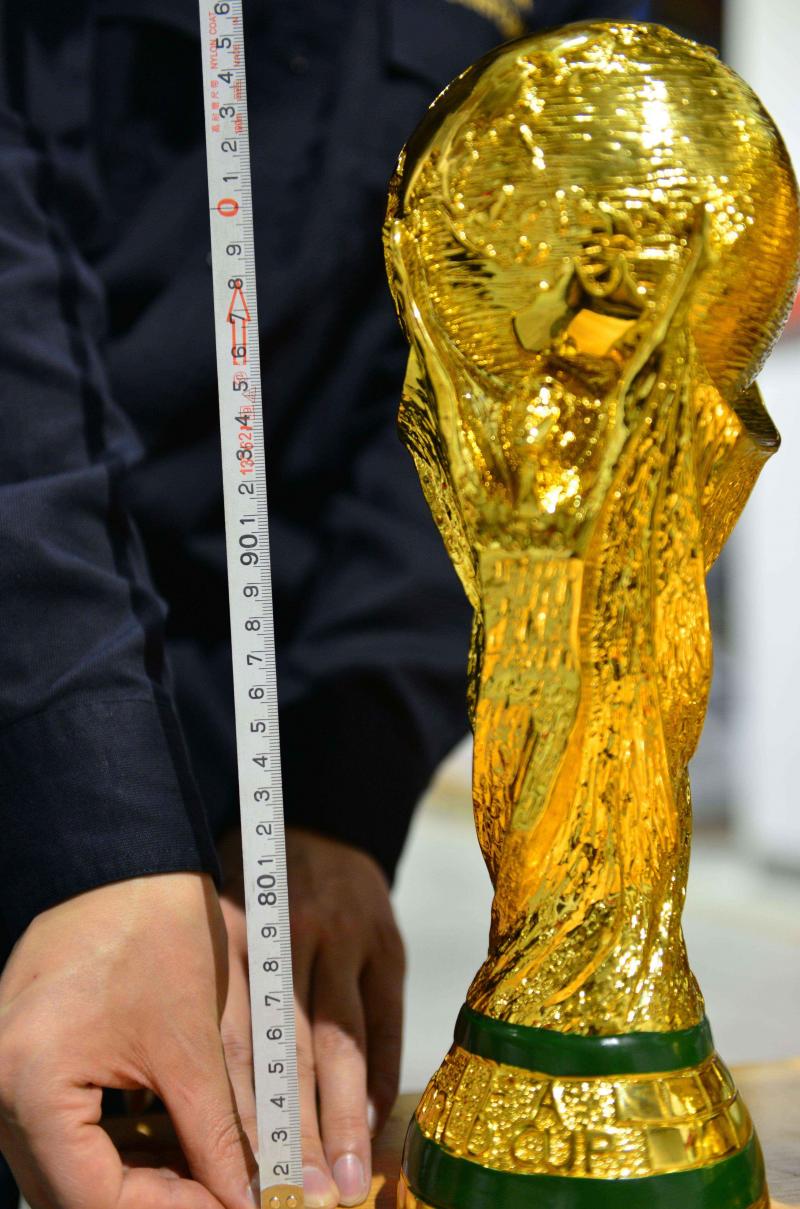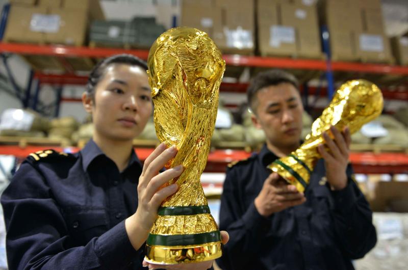 Douane-ambtenaren hebben gisteren in Yiwu in de provincie Zhejiang, China, meer dan duizend valse WK trofeeën in beslag genomen.