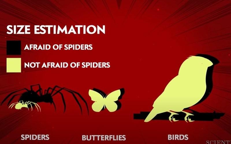 Het opvallende resultaat was dat de mensen met arachnofobie de spinnen systematisch groter inschatten dan de mensen zonder angst. Je zou kunnen denken dat die proefpersonen gewoon weinig inzicht hadden in de grootte van objecten, maar dat klopt niet. Ze slaagden er namelijk wel in de omvang van minder enge vlinders en vogels correct te raden.