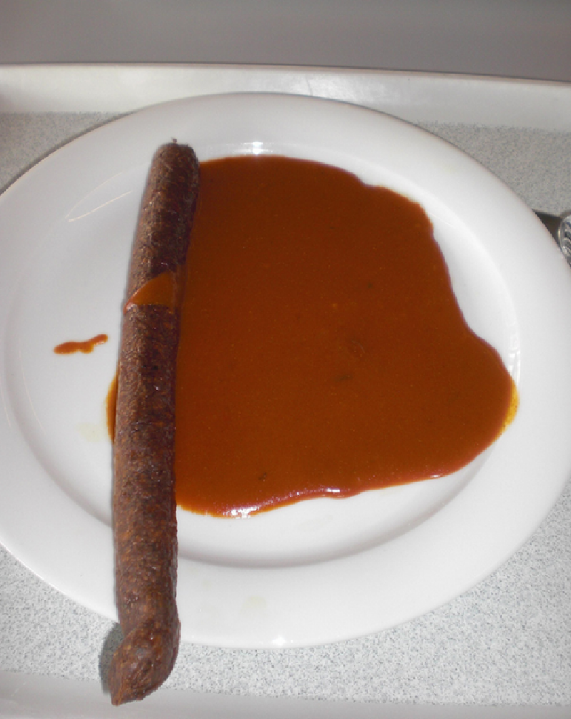 Het blijkt moeilijk om smakelijke foto's van worst te nemen, hoeveel saus of puree je ook toevoegt
