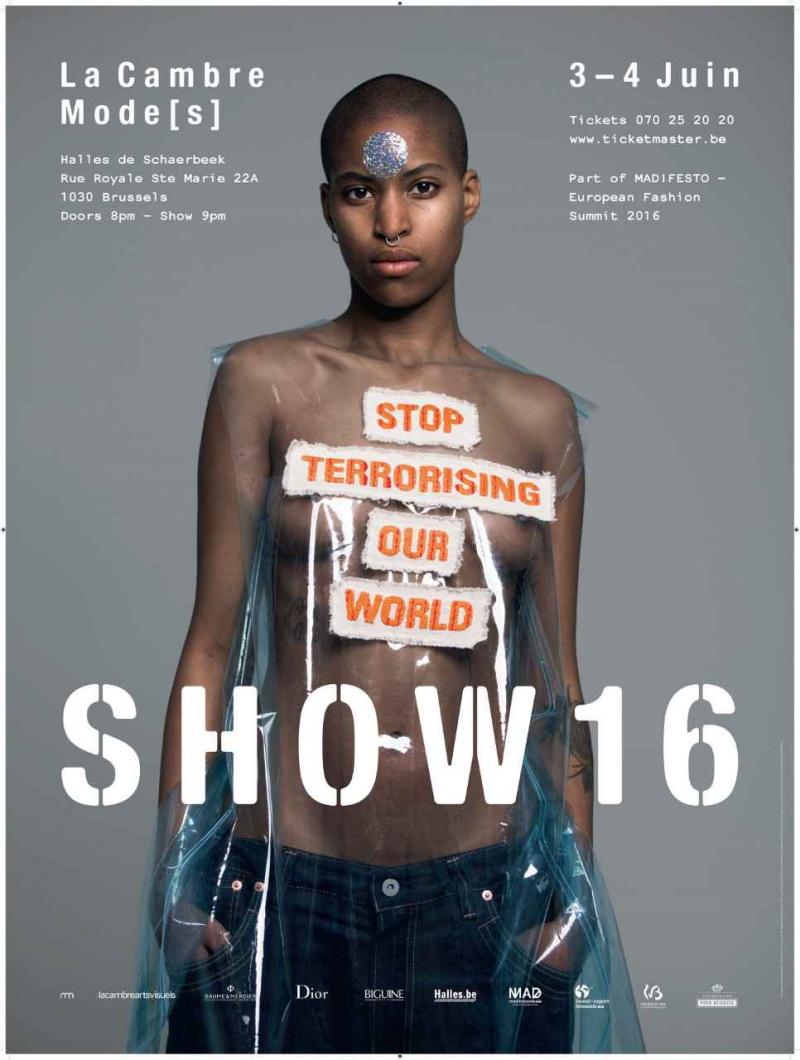 Zelfs de grootste ontwerpers zijn hun carrière ooit gestart op de schoolbanken. Daar is de indrukwekkende lijst afgestudeerden van zowel de Antwerpse modeacademie als de Brusselse La Cambre het beste bewijs van. Olivier Theyskens, Kris Van Assche en meer recent Wim Bruynooghe en Devon Halfnight Lefluffy: met dank aan deze modescholen schopten zij het van nobele onbekende tot veelbelovend talent en gevestigde waarde. Voor de afstudeercollectie van 2016 sloegen deze twee scholen de handen in elkaar om één duidelijke boodschap de wereld in te sturen: zeg néé tegen terrorisme.