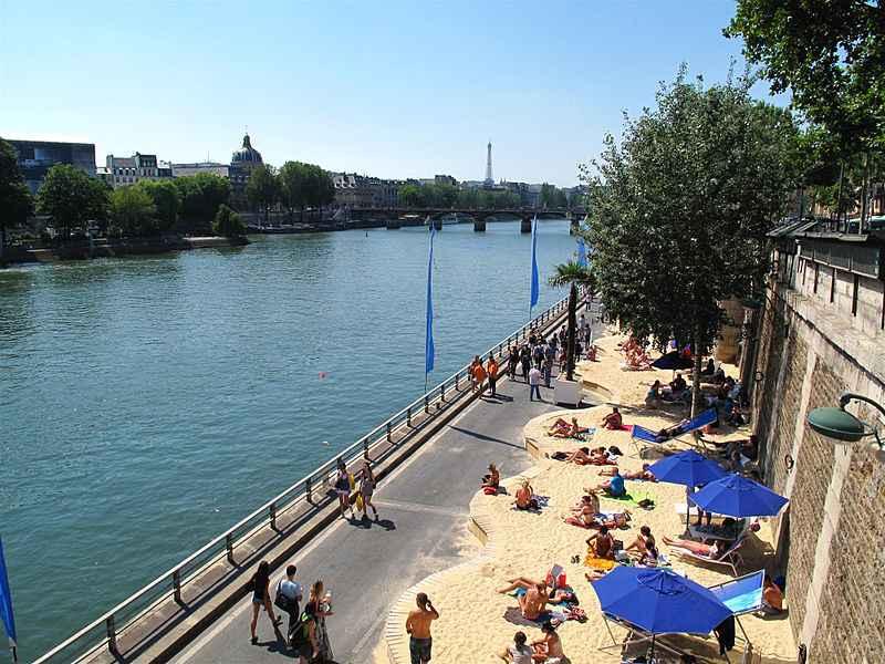 De Parijzenaars vinden verpozing op Paris plages' (foto boven), de zandstranden die tijdens de zomer te vinden zijn aan de Seine. Zwemmen in de rivier is niet toegelaten, maar voor de gelegenheid wordt er een tijdelijk zwembad aangelegd. Andere steden waar je heerlijk kan zwemmen zijn Rio, Lissabon, Sydney en minder voor de hand liggende locaties als Stockholm, Vancouver en Berlijn, die laatste mét badboot. Dat weet de Amerikaanse nieuwszender CNN te vertellen in hun overzicht van de beste zwemsteden'.