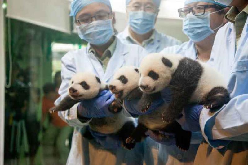 Ze werden op 29 juli in het Chimelong Safari Park van Guangzhou in China geboren en ze werden omschreven als een wonder. De pandadrieling veroverde op korte tijd de wereld maar de beestjes waren nog blind en moesten goed verzorgd worden. Donderdag maakte de zoo bekend dat de drieling het uitstekend doet en dat ze alle drie voor de eerste keer hun ogen openden.