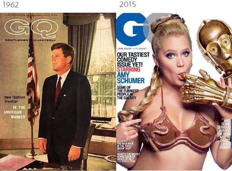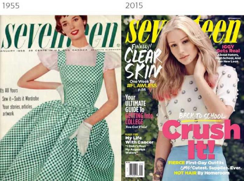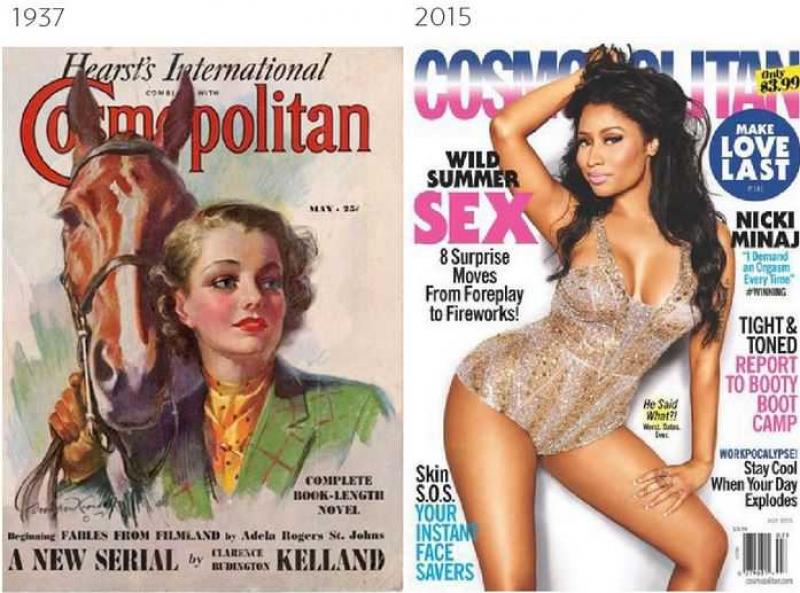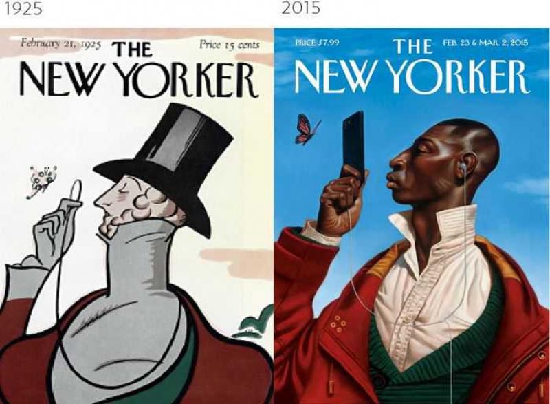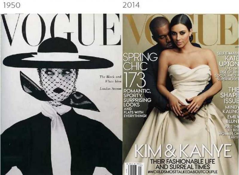 Voor haar project vergeleek ze gigantisch veel tijdschriftomslagen. Zoals ze al vermoedde, zijn de stijl, logo's, lettertypen en composities van de covers door de jaren heen drastisch veranderd. Terwijl er vroeger bijvoorbeeld handgetekende chique dames pronkten op de Vanity Fair (foto boven), werd de voorkant van het magazine recent nog gesierd door Caitlyn Jenner. "De veranderende cover van een tijdschrift zegt iets over onze maatschappij. We zijn seksueler en nepper geworden in onze uitingen, en onze aandachtspanne is korter. Tegelijkertijd staan we meer open voor andere denkbeelden. Ongeacht of de ontwikkeling van het tijdschriftcover de goede of slechte kant opgaat, we blijven in ieder geval de grenzen opzoeken van wat acceptabel is," besluit Cheng.