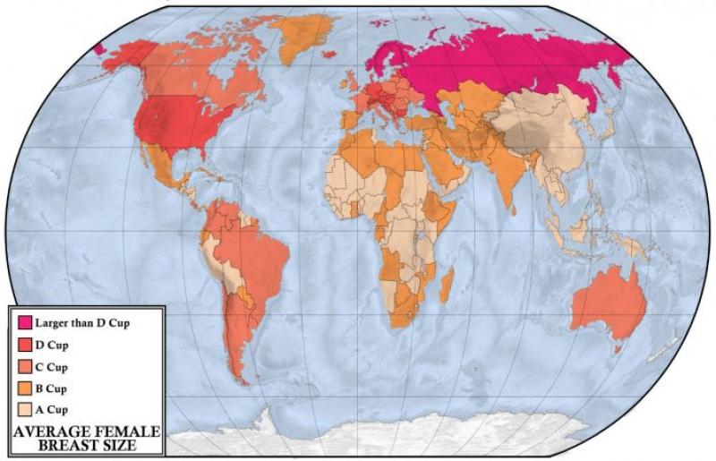 Vrouwen uit RUsland en Scandinavië zouden de grootste borsten hebben. Wij Belgen zitten in middenmoot met een C-cup als gemiddelde.
