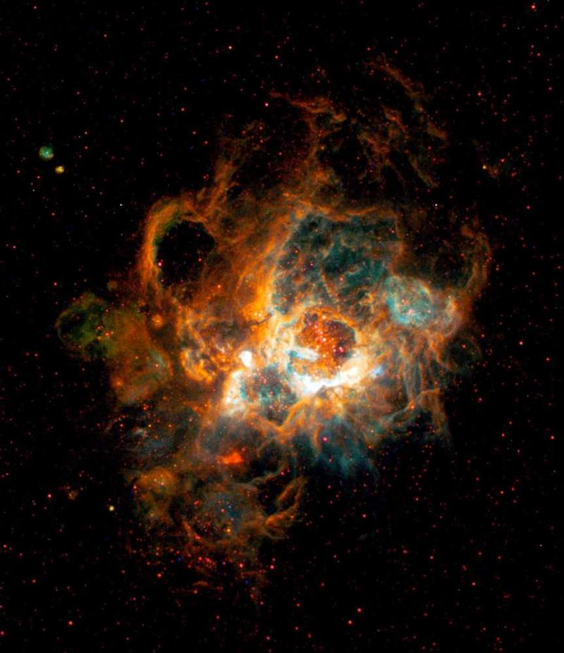 8. Op deze foto zie je gaswolken in de nevel NGC 604 in melkweg M33. In het midden van de nevel zijn er 200 hete sterren die elk 16 tot 60 keer groter zijn de zon.