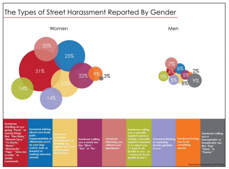 Uit de studie blijkt dat rijke, blanke, heteroseksuele mannen niet geconfronteerd worden met ongewenste intimiteiten. Vrouwen en LBGT-mensen krijgen er vaker mee te maken, maar ook mensen uit een lagere inkomensklasse of met een andere huidskleur worden vaker lastiggevallen. De daders van de intimiteiten waren ook vooral mannen. 70% van de vrouwen en 48% van de mannen zeiden dat ze lastig werden gevallen door één man, 38% van de vrouwen en 25% van de mannen werden lastiggevallen door en groep mannen en 20% mannen werd lastiggevallen door één vrouw. Ongewenste intimiteiten op straat zijn in principe een probleem voor iedereen maar dit onderzoek toont vooral weer de machtsverhoudingen in Amerika, met de blanke, rijke man bovenaan.