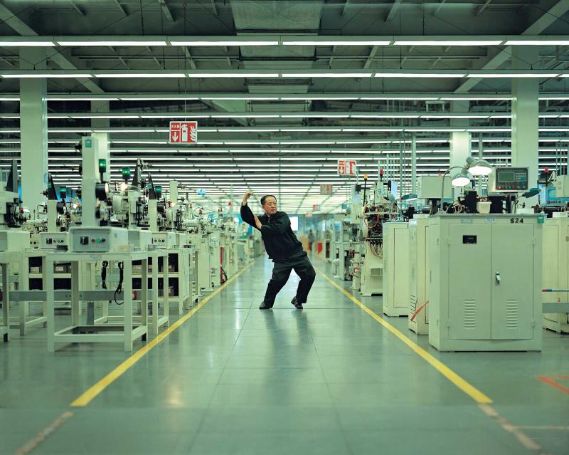 Een van de kunstenaars is Cao Fei. Zij verbleef zes maanden in de fabriek van lampenproducent Osram in Shenshen, waar ze contacten legde met de arbeiders met wie ze kunstprojecten diverse uitwerkte (foto onder, omslagfoto). De prachtige kortfilm Whose Utopia?' toont een gestileerd beeld van het productieproces in de fabriek. Naast de kortfilm zien we enkele uniformen van Osram-medewerkers. In de etiketten van de kledij lezen we de hoogste persoonlijke verhalen van enkele werknemers, over hun gefnuikte ambities en hun frustrerende levensomstandigheden. Het meest fascinerende werk op de expo is een tafel met twee stoelen van het duo Sun Yuan en Peng Yu. Af en toe valt er een druppel op de tafel, die vervolgens meteen verdampt. Een verwijzing naar de spanning die soms ontstaat wanneer twee mensen tegenover elkaar zitten. Het duo is vooral bekend van hun zeer provocatieve werken waarin ze onder meer gebruik maakten van menselijke foetussen.