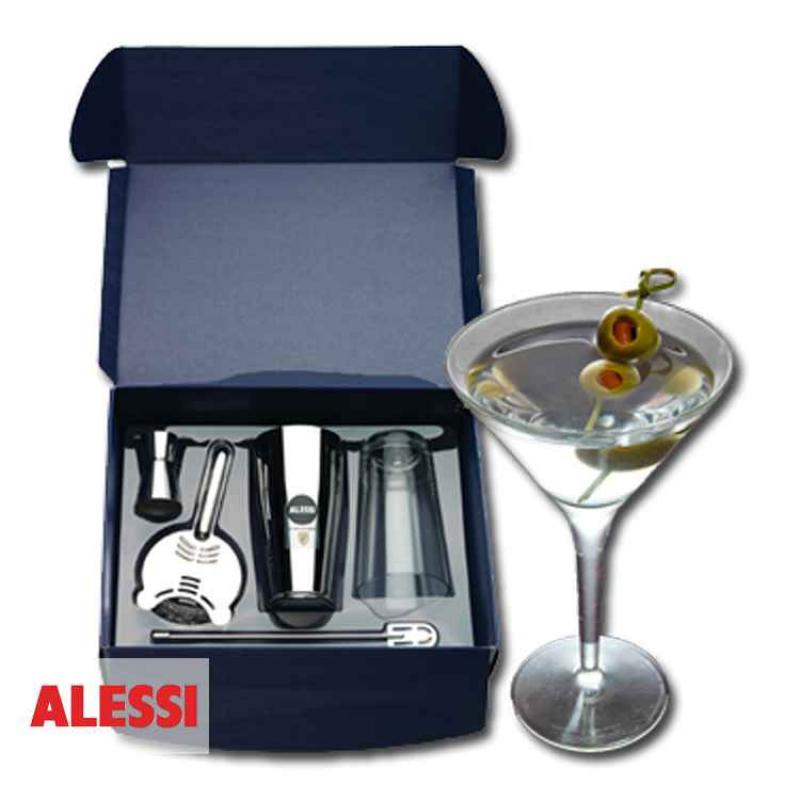 De Alessi Shaker 5050set Il bar Alessi is een ontwerp van Ettore Scottsass. Het setje bevat een Boston' shaker met een glas, een zeefje, een roerstokje en een maatbekertje. Onmisbaar voor wie al eens graag zelf een cocktail mixt.