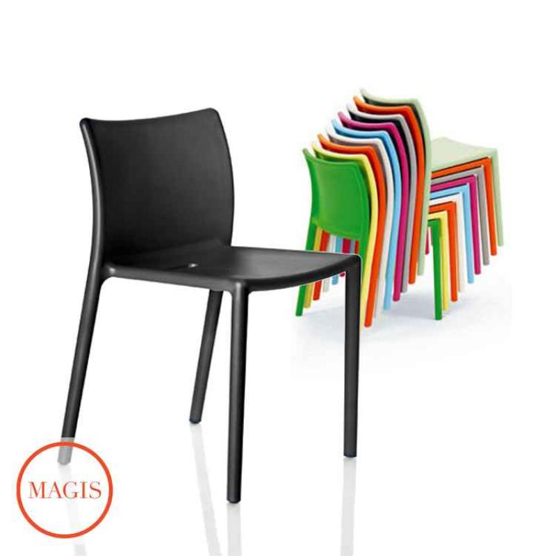 De Magis Air-Chair is een uiterst sterke, stapelbare stoel die geschikt is voor binnen en buiten. Deze goedkope designstoel is verkrijgbaar in verschillende kleuren en past perfect bij andere Airmeubels van ontwerper Jasper Morrison. Bovendien is het een ecologisch product bij uitstek, doordat de stoel in zijn geheel te recycleren is en slechts één productiestap heeft.