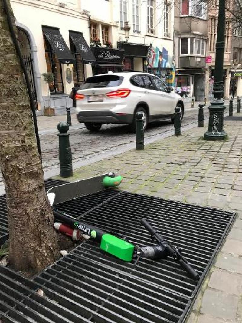 Half april werd een video meer dan een miljoen keer bekeken op Twitter. We zien een man van zestig jaar, discreet gefilmd in de straten van Parijs, die opzettelijk drie scooters omverloopt die midden op de stoep staan. Dat kan grappig lijken, maar die handeling is allesbehalve onschuldig. Tijdens een wandeling door de straten van Brussel is het niet ongebruikelijk om een hele vloot steps op de grond te zien liggen, zelfs op windstille dagen.
