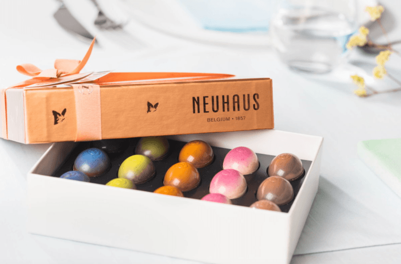 Wie deze eitjes in zijn tuin spot, is een echte gelukzak! Geïnspireerd door de ontluikende lente ontwikkelden de Maîtres Chocolatiers van Neuhaus vijf paaseitjes met unieke, natuurlijke kleuren en smaken die elkaar versterken. Dankzij de uitgekiende smakencombinaties, zoals bosbessen en munt, pecannoten en een vleugje paprika, gember en citroen, is elke eitje een echte delicatesse. Een box voor fijnproevers Mis deze limited edition voor Pasen niet!