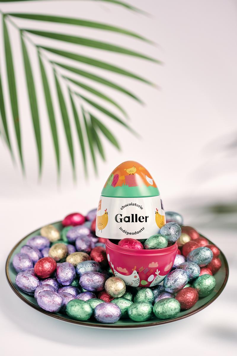 Ook dit jaar is het Rode kippetje al jaren de mascotte van chocolaterie Galler weer van de partij. Samen met haar kleurrijke vriendjes vergast ze ons op lekkere gevulde eitjes. En voor 2021 hebben de vrolijke diertjes allesbehalve stilgezeten in hun hok! Het assortiment telt maar liefst 13 smaken waaronder Noir Pistache, Melk Kokosnoot en klassiek Wit Praliné. Dit metalen designei telt 15 emblematische eitjes in alle kleuren van de regenboog!