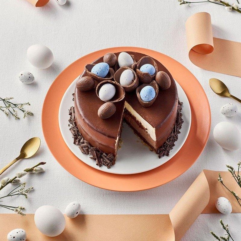 Deze betoverende taart van Les Tartes de Françoise is het resultaat van de ontmoeting tussen de zwaluw en de haas bij het eerste lentelicht. De zwaluw was slim genoeg om de haas uit te dagen om eieren te leggen. Het resultaat is een prachtig versierde paastaart en een mooi verhaal voor kinderen dat je op de verpakking kan lezen. Ook qua smaak stelt dit kunstwerk niet teleur! De betoverende taart neemt je mee naar de wondere wereld van chocolade dankzij de romige mousse en de cacao génoise biscuit. En ook de krokante praliné feuilletine en de zoetheid van de vanille-slagroom zullen je weten te bekoren.
