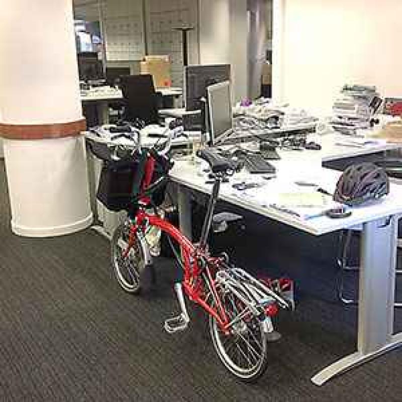 Drie kilometer fietsen met de plooifiets na de treinrit Hasselt - Leuven. s Morgens bergaf, s avonds bergop. Deze rit geeft me inspiratie en energie.