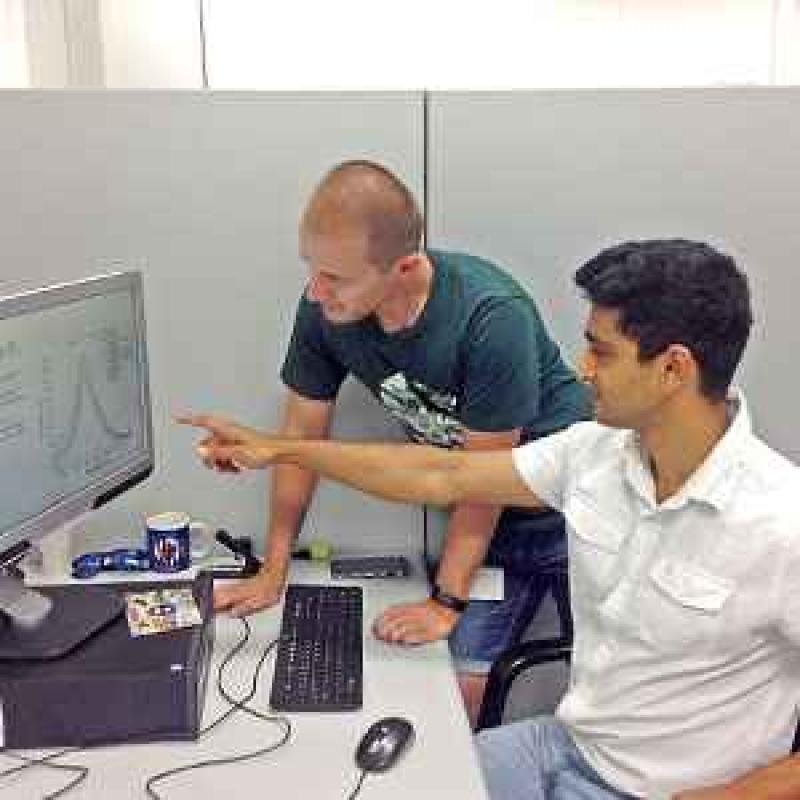 Ik spring bij mijn studenten binnen. Zo overloop ik regelmatig met een Indische masterthesisstudent uit Nederland de resultaten van zijn onderzoek. Ik laat vooral hem praten en geef advies.