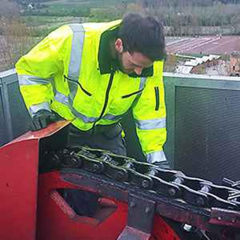 De dag begint met het checken van de liftketting van de attractie Vampire.