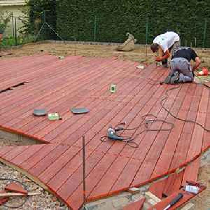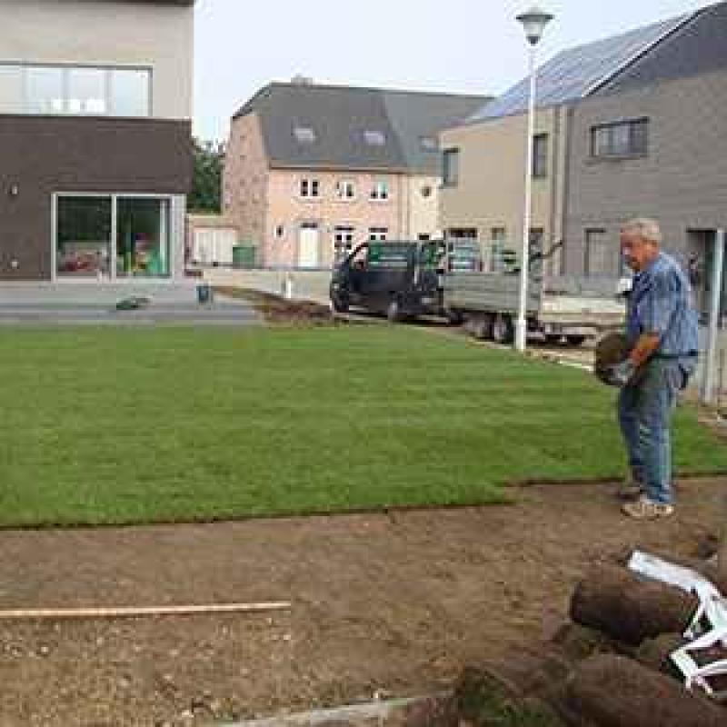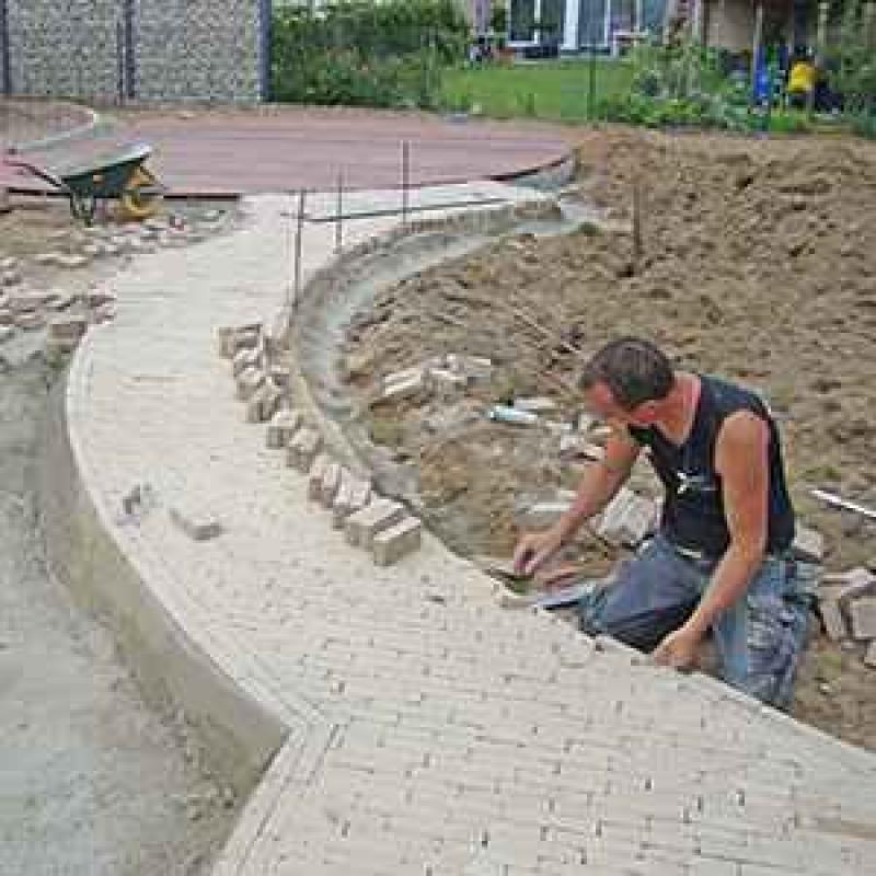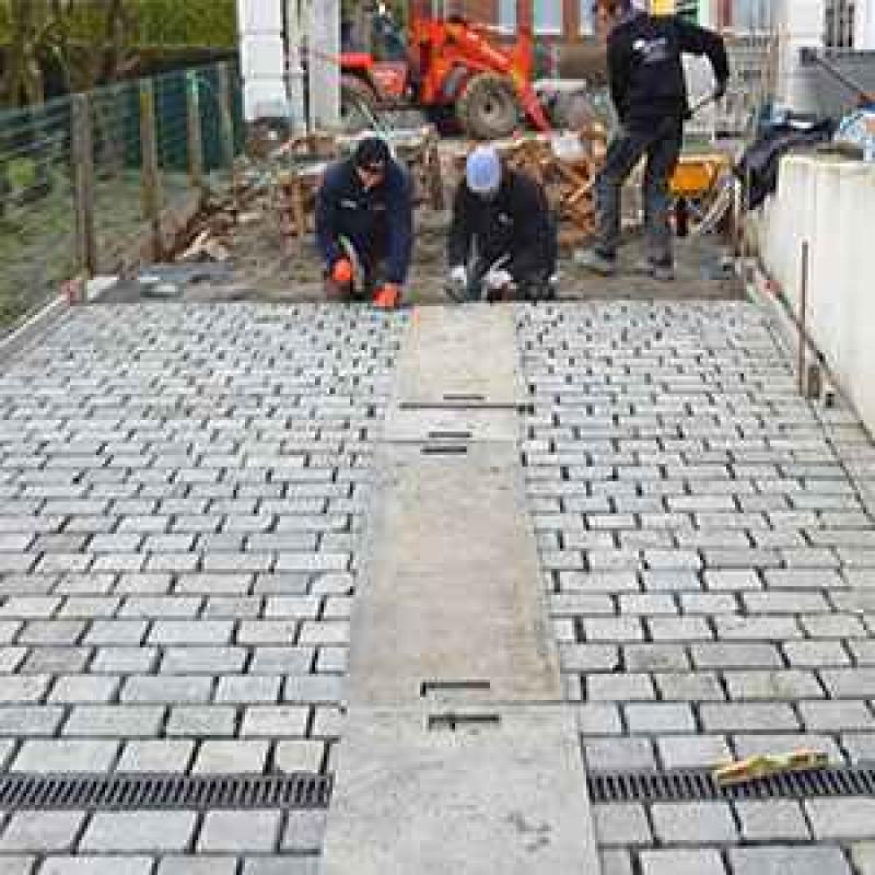 Met een ploeg aan de slag om een oprit in platines aan te leggen.