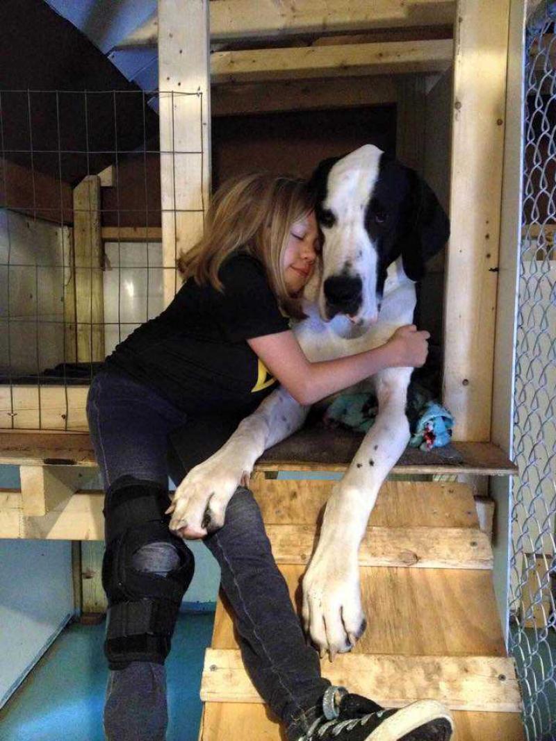 Nadat alle traditionele therapieën niets uithaalden, besloten de ouders van Bella in 2014 om een Deense dog in huis te halen. George wijkt sindsdien niet meer van de zijde van Bella. Het imposante dier dat maar liefst drie keer zo zwaar is als het meisje, helpt haar niet alleen met lopen maar is ook een bron van levensvreugde. "Sinds de komst van George is ze sterker actiever geworden", getuigt de moeder van Bella. "George is de trouwste hond die we konden vinden. Hij weegt zestig kilo, terwijl Bella er amper twintig weegt maar hij is altijd rustig rond haar. En hij doet alles wat ze van hem vraagt", aldus de moeder. "Hij gedraagt zich kleiner dan hij werkelijk is", zegt Bella.