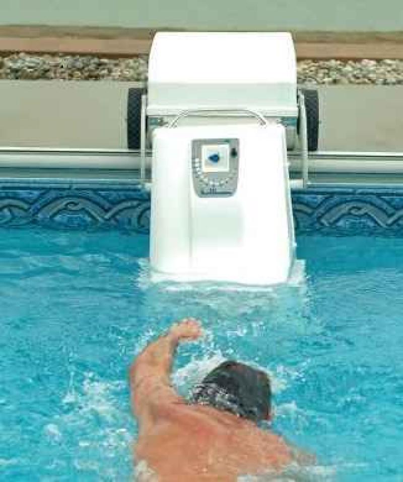 Als je je niet kunt overtuigen om naar de sportschool te gaan, dan kan je nog altijd oefenen in het zwembad. Met dit apparaat kun je kunstmatig stroming brengen in je zwembad. De Treadmill is zo krachtig dat het op maximale sterkte een stroming kan simuleren zoals je die in de oceanen kunt vinden. En het is eenvoudig te gebruiken. Je rolt het apparaat naar de rand van het zwembad, laat het zakken in het water en je start de oefening. Voor bijna 3000 euro op Hammacher.com kan je jezelf trainen op deze ongebruikelijke wijze.