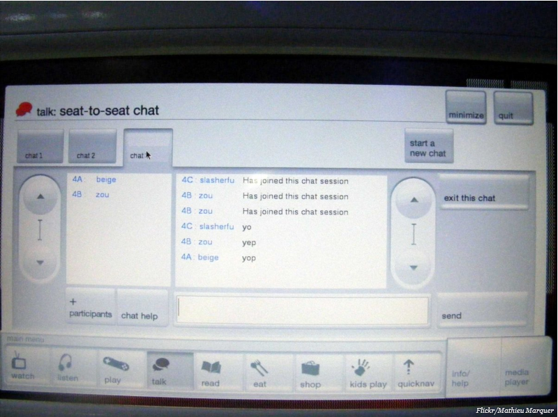 Het Nederlandse KLM was de eerste maatschappij die in 2012 een project lanceerde waarbij mensen hun account van Facebook en LinkedIn konden verbinden met een map van de zetelverdeling in het vliegtuig. Op die manier konden passagiers op basis van gedeelde interesses of vrienden bij elkaar in de buurt gaan zitten.