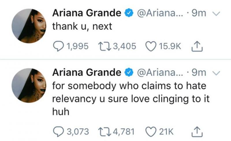Toen komiek Pete Davidson een grap maakte over de breuk tussen hem en Ariana reageerde zij gevat op Twitter. Ouwtch Pete.