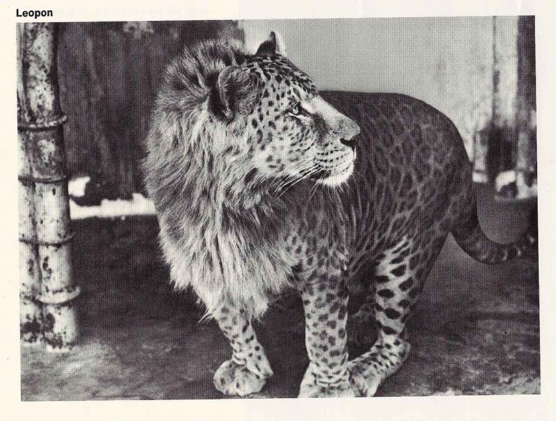 Daar zijn de leeuwen weer. Dit beestje gaat door het leven als een leopon. Het is een kruising tussen een luipaard en een leeuw.