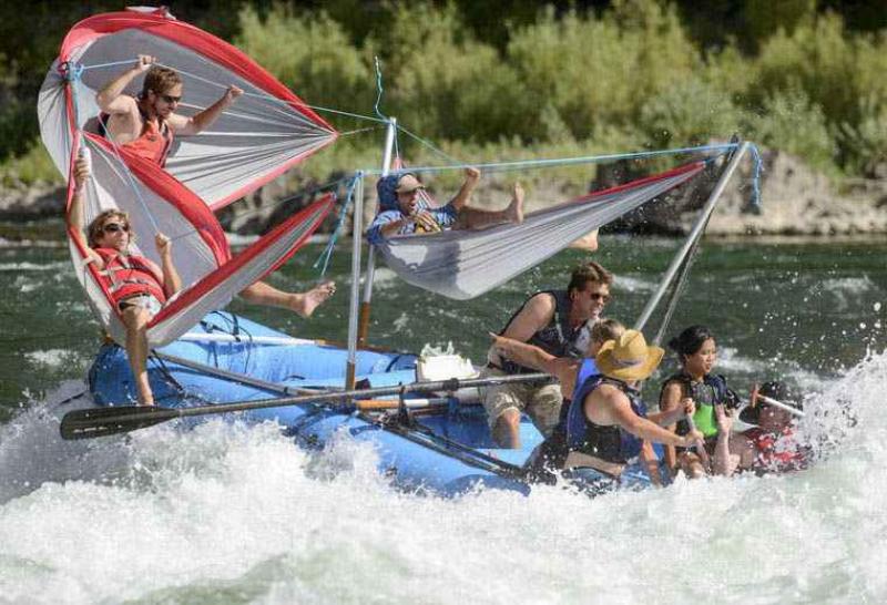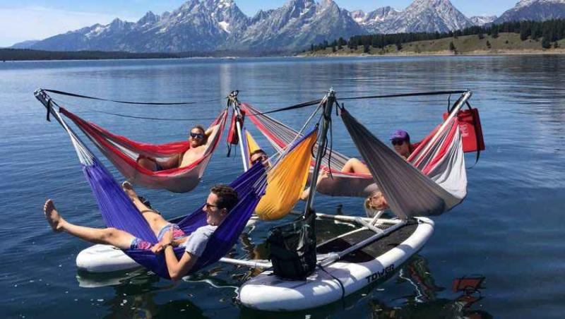 Wat is er relaxter dan in het zonnetje liggen in een hangmat? Enkele ondernemende Amerikanen hebben een antwoord gevonden op die vraag: op het water relaxen in een hangmat is voor hen het summum van genieten. Ze ontwierpen een hangmatraft, een boot waarop je tot vijf hangmatten kan monteren. Met hun bedrijfje 'Hammocraft' verkopen ze de constructies nu ook.