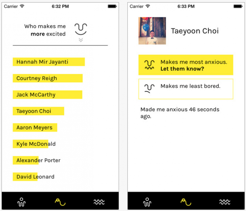 Een van de deelnemers onthulde dat een bepaalde vriend haar humeur beïnvloedde elke keer wanneer ze tijd met hem doorbracht. "Mark maakt me blijkbaar vaak boos volgens de app. Misschien moet ik niet zoveel afspreken met hem," zei ze.
