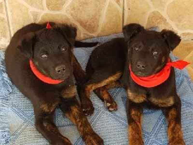 Ik ben Frida, en sta rechts op de foto, naast mijn zusje Osa. We werden piepjong, samen met onze 2 andere zusjes, voor de deur van een huis op het platteland achtergelaten. Niemand wist waar we vandaan kwamen. We zijn 2 vrolijke, speelse dames, die het prima kunnen vinden met alle honden. Zelfs katten vinden ons OK, en wij hen. Onze zusjes hebben al een fijne thuis gevonden.