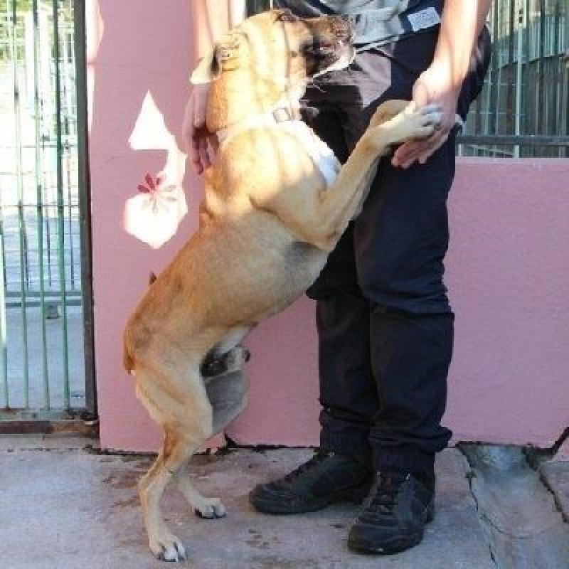 Ik ben Benetto, een mooie, grote Bodeguero (soort Spaanse fox). Ik ben lief met mensen, maar ben eerder van het actieve type: ik houd meer van wandelen dan van knuffelen. Met mij heb je een perfecte wandel-en joghond, altijd paraat en in vorm! Ik zou mij heel goed thuis voelen in een gezin met grotere kinderen, kleintjes zouden voor mij wat te druk zijn. Ik kan zeer goed overweg met andere, niet te dominante honden. Op een grote groep honden ben ik minder gek, dat vind ik teveel gedoe. Wie wil mij in zijn gezin opnemen?