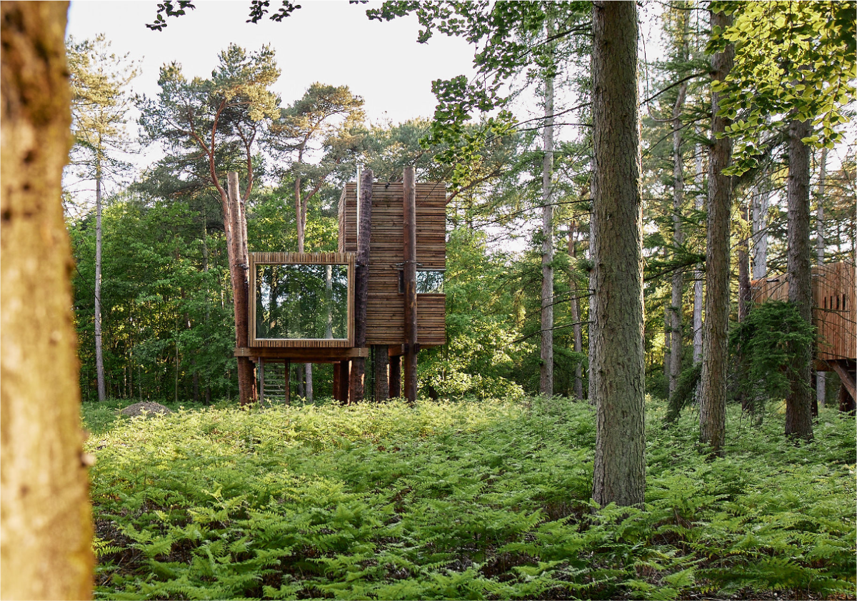 James Mennekens, de vroegere CEO van Center Parcs, kwam op de proppen met het idee. De houten 'treelofts' zijn zo'n 57 vierkante meter groot, hebben een woonkamer, twee slaapkamers, twee terrassen, een volledig uitgeruste keuken en een badkamer met regendouche en sauna.