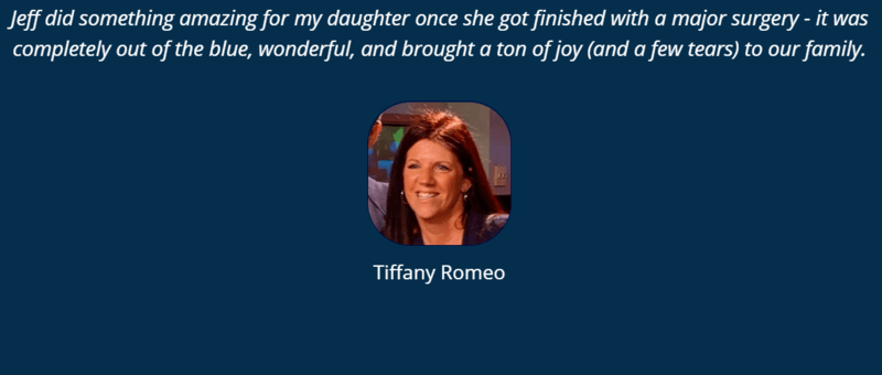 In het welkomstfilmpje op zijn persoonlijke datewebsite, zegt Jeff genoeg te hebben gehad van de normale datingapps zoals Tinder en Bumble. Hij noemt die virtuele wereld "een giftige gemeenschap" waarin "mensen elkaar slecht behandelen". Bovendien beweert hij dat hij een bepaald demografisch segment van de vrouwen nooit zal tegenkomen op datingapps. Toch wil hij niet bij de pakken blijven zitten, en daarom ontwikkelde de ondernemer wat hij denkt "een betere manier" te zijn. Dat is: er een smak geld tegenaan gooien. "Ik snap dat het een beetje raar is om geld uit te geven aan een eerlijke zoektocht naar een zielsverwant", geeft Jeff toe. "Maar je moet het zo bekijken: daten is duur. Elke maand geef ik veel geld uit aan restaurants, drankjes, activiteiten... We bekeken gewoon hoeveel het me per maand kostte en hoeveel maanden het zou duren om de ware liefde te vinden. We besloten dan een vindersloon op te stellen. Ik geef het geld liever aan iemand die geïnteresseerd is om me te helpen dan de datingapps."