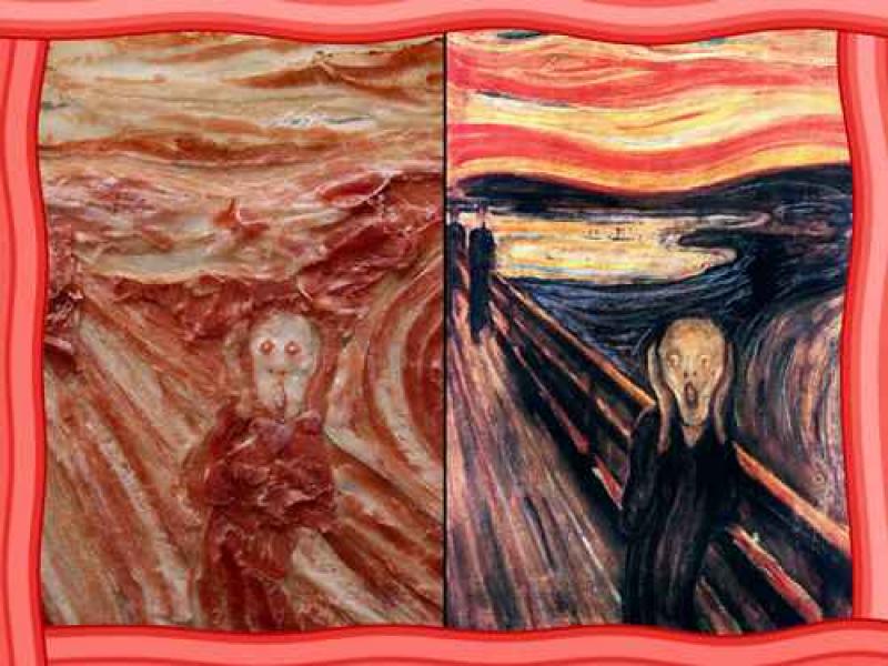 Latte art is tegenwoordig niet meer weg te denken bij ons kopje koffie, maar wat dacht je van een kunstwerk bij je eitjes als ontbijt. Deze liefhebbers van spek konden het niet laten om met hun favoriete ingrediënt een artistiek stuk te maken. Moeilijk om te weerstaan!