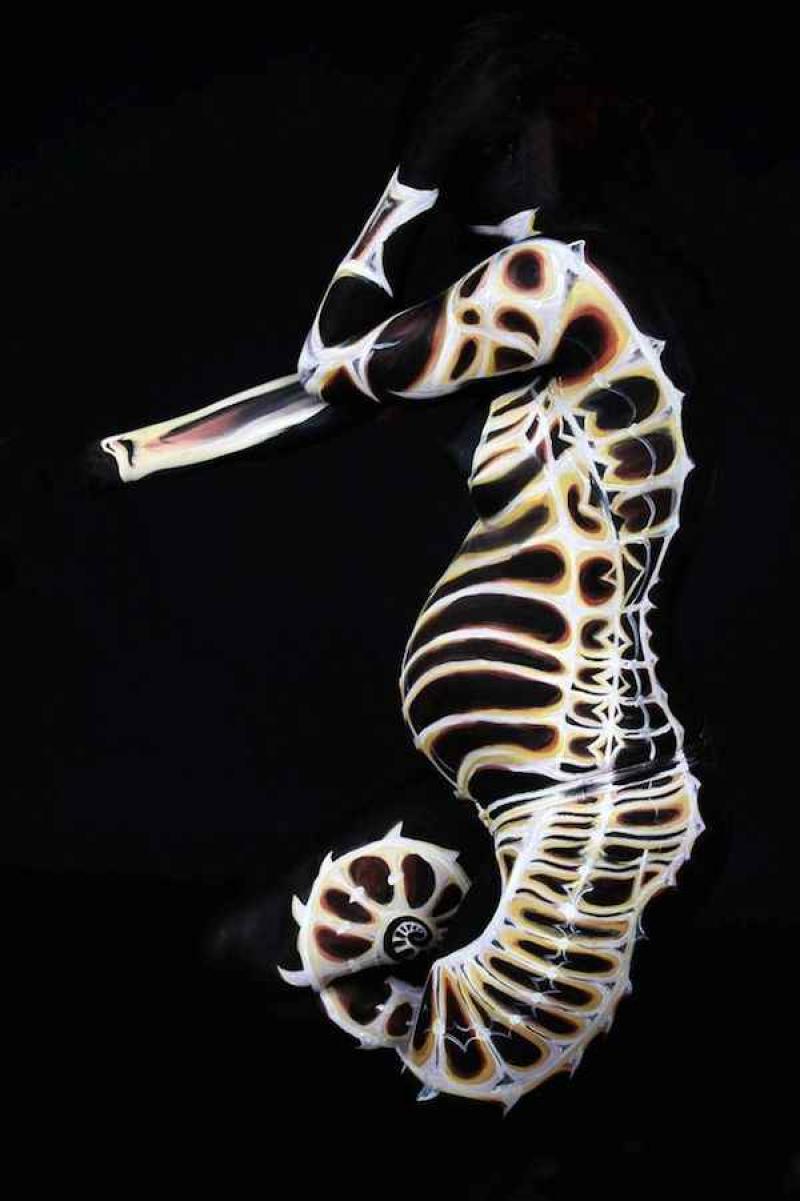 Je zou denken dat deze kunstwerken gephotoshopt zijn of dat ze werden gebeeldhouwd uit hout of wax maar het zijn mensen beschilderd met body paint en het is even wonderbaarlijk als geniaal.