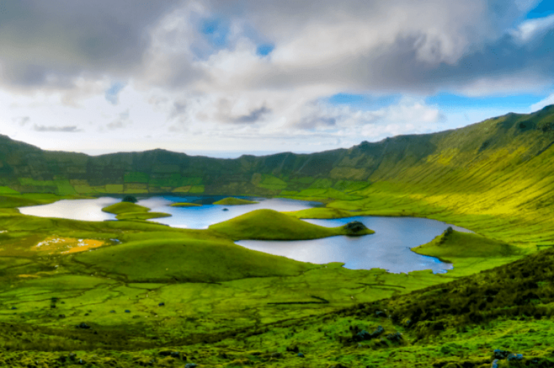 Op zo'n 1.600 kilometer van het Portugese vasteland liggen de prachtige Azoren. Nee, dat zijn geen gebronzeerde beachboys op een strandhanddoek aan de kust, maar wel een ketting van negen eilanden. Ten noorden van het grootste en drukste eiland São Miguel, ligt het serene Corvo. Het plekje telt slechts achttien vierkante kilometers, 400 inwoners en drie restaurants. Toch is er voor avonturiers meer dan genoeg te beleven: je kan er vissen, een duik nemen in de zoetwatermeren, vogelspotten en zelfs vulkanen beklimmen.