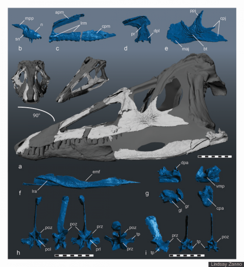 Toen wetenschappers de fossielen onderzochten, realiseerden ze zich dat ze te maken hadden met een nieuwe soort. Het schepsel zou negen meter groot zijn geweest en 231 miljoen jaar geleden geleefd hebben. Dankzij een scanner, wist het team de schedel van het dier te reconstrueren.