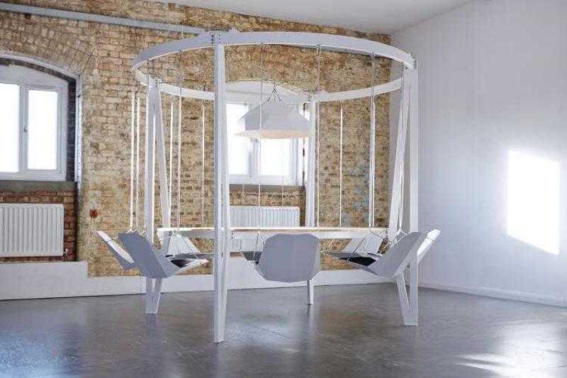 Het is moeilijk in te beelden dat een vergadering saai kan zijn als je aan The King Arthur Round Table zit. Zelfs als de mensen saai zijn of het onderwerp saai is, zul je je niet vervelen. Dat komt allemaal doordat de King Arthur geen stoelen maar schommels heeft. Als je je ooit verveelt, kun je jezelf vermaken door heen-en-weer te schommelen.