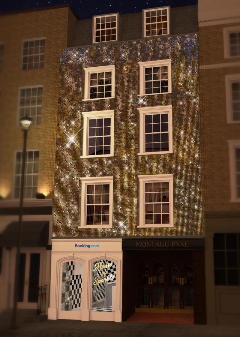 Het huis bestaat uit 100 kilogram glitters, 36.000 gouden pailletten en 52.000 glinsterende bolletjes. De badkamer is glimmend roze en de slaapkamer kleeft vol met gouden en zilveren pailletten. Het glitterhuis is een samenwerking tussen Booking.com en designer Christian Cowen. "De inspiratie voor dit project haalde ik bij mijn laatste collectie", vertelt Cowen aan de lokale pers. "Die draaide rond glitter, glamour en drama." Wie een nachtje in dit glanzende paradijs wel ziet zitten, kan terecht op Booking.com. De prijzen liggen rond de 100 euro per nacht, inclusief een schitterend hapje en drankje bij aankomst.