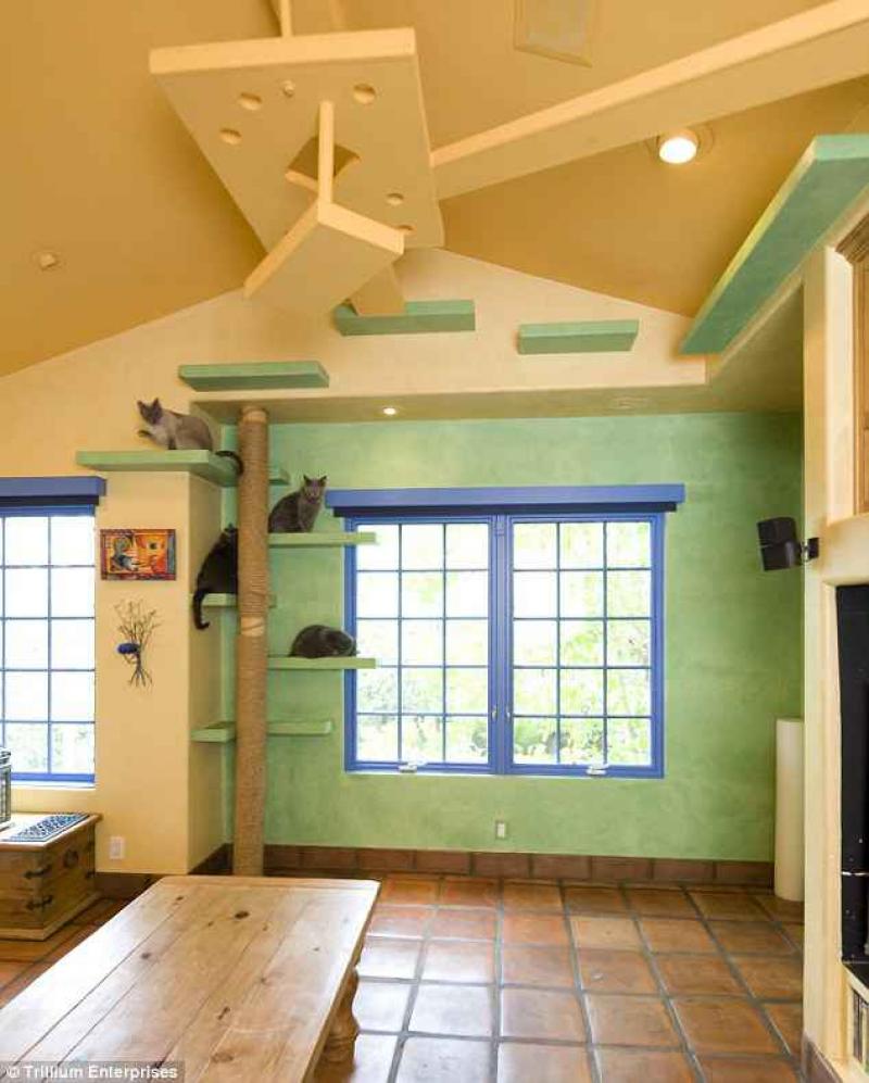 Wanneer een man uit Goleta in Californië besloot dat hij zijn huis ging verbouwen, dacht hij ook aan zijn katachtige vrienden. De man liet overal klim- en krabpalen, loopbruggetjes en zelfs een speciale wenteltrap installeren voor zijn 18 katten.
