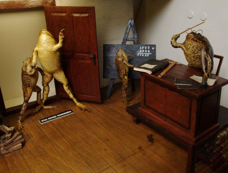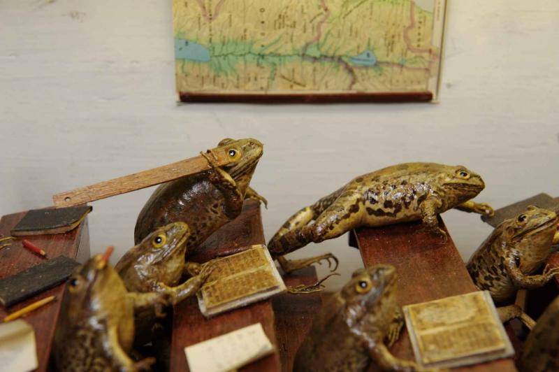 Kikkers die tennissen, kikkers die kaartspelen, kikkers die vissen... Je krijgt het allemaal te zien in de Kroatische stad Split. De opgezette dieren dateren uit de collectie van de taxidermist Ferenc Mere, die in het begin van de 20ste eeuw leefde. Destijds was taxidermie een grote hype, ook Darwin had er een boontje voor. Mere was een echte kunstenaar, hij ontwikkelde een speciale methode om kikkers te bewaren. Het was immers alom geweten dat amfibieën extreem moeilijke onderwerpen voor taxidermie zijn. Ook nu nog waagt geen enkele taxidermist zich eraan.