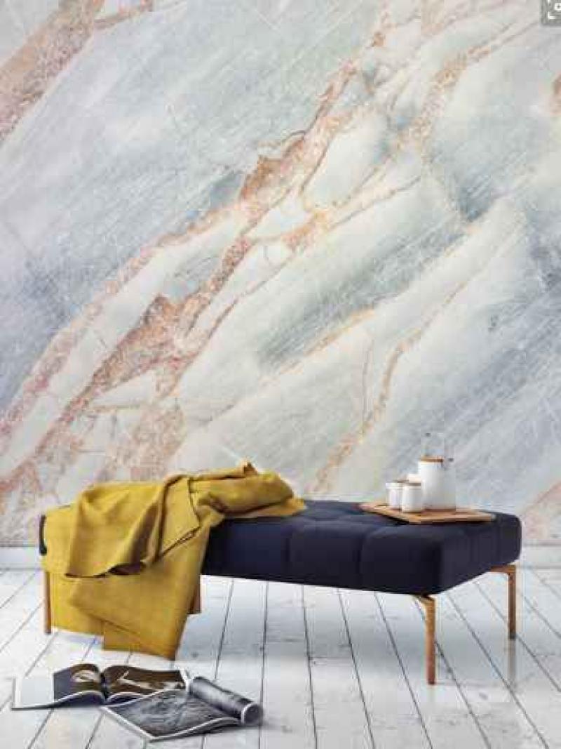 Iedere zichzelf respecterende Instagrammer heeft ergens op z'n account wel een plaatje met een marmeren tafel, smartphonehoes of onderzetter. In 2017 zien we echter dat ook marmeren behangpapier stevig in opmars is. Op Pinterest werd er alleszins drie keer vaker naar gezocht dan vorig jaar.