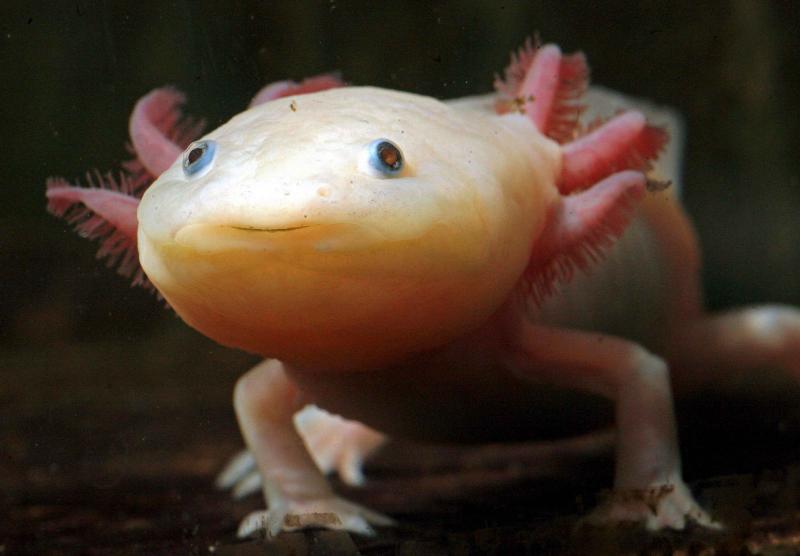 De axolotl is een bedreigde watersalamander uit Mexico. Het vreemde beestje behoudt kenmerken van een larve maar wordt wel geslachtsrijp. Opmerkelijk aan de axolotl is dat ze kunnen regenereren zonder littekenweefsel. Zelfs als ze ledematen verliezen kunnen deze volledig terug aangroeien.