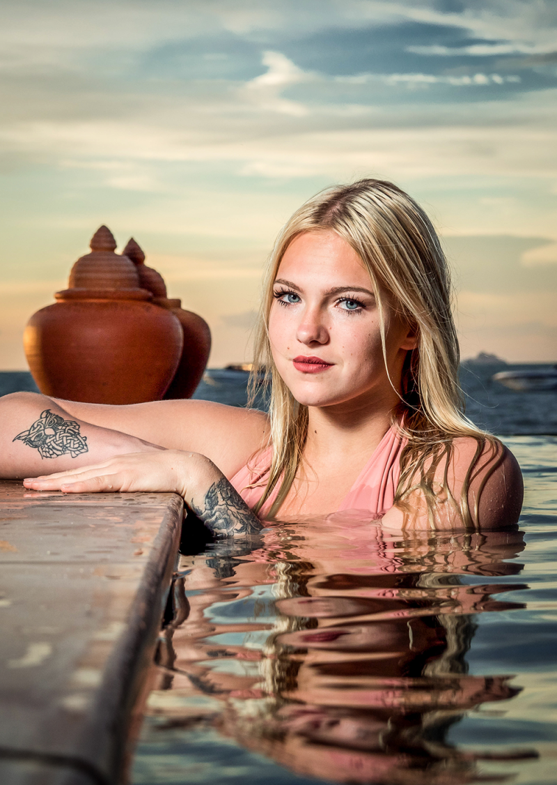 De 22-jarige Inge voelt zich als zwemcoach als een vis in het water in haar bikini. In het echte leven valt ze vooral op foute mannen die hun vrouw bedriegen. Mmh, waar kennen we dat nog van?